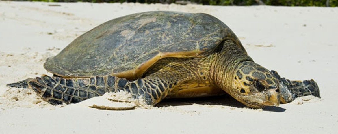 The hawksbill sea turtle is a small, agile turtle with an oval-shaped body. The reptile has powerful toothless jaws and a raptorlike "beak," which earned the hawksbill its name. This beak is perfectly suited for crushing, biting, and tearing food. The carapace has a tortoiseshell coloration, ranging from dark to golden brown with varying streaks of orange, red, and black. The shells of hatchlings are just one to two inches (2.5 to 5 centimeters) long and are usually heart-shaped and brown. The turtle’s bottom shell is yellow. The top shell’s rear edge is almost always serrated and has overlapping horny plates called scutes. The hawksbill has two pairs of prefrontal scales on its head and four pairs of scutes on the sides of its carapace. On average, adult hawksbills weigh between 100 and 150 pounds (45 and 68 kilograms) and their shells grow to an average length 2.5 feet (0.8 meters).